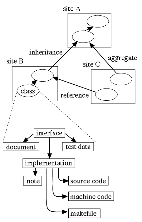 背景と目的 でも述べたように, 我々の最終的な目的は 分散環境でのオブジェクト指向ソフトウェアの協同開発 をそのライフサイクル全般を通して支援することである. 例えば, 数人の開発者が協同して一つのソフトウェアシステムを 開発しているような場合を考える. このような場合に ライブラリや部品を協同利用した時に生じる問題としては 以下のようなものが上げられる.