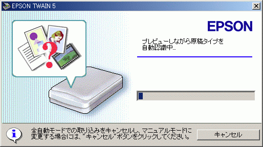 スキャナが動き始め以下の画面が出たらすかさずキャンセルする。